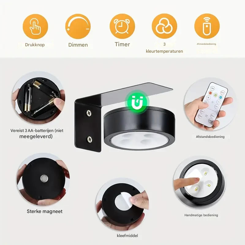 Geen gaten, geen gereedschap – Dankzij de magnetische strip hangt uw lamp in 10 seconden recht, zonder te boren in uw muren.