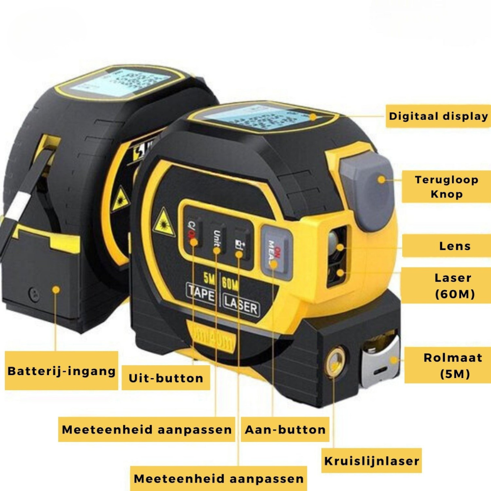 Duo-Meting: 40m Laser + 5m Slijtvast Lint