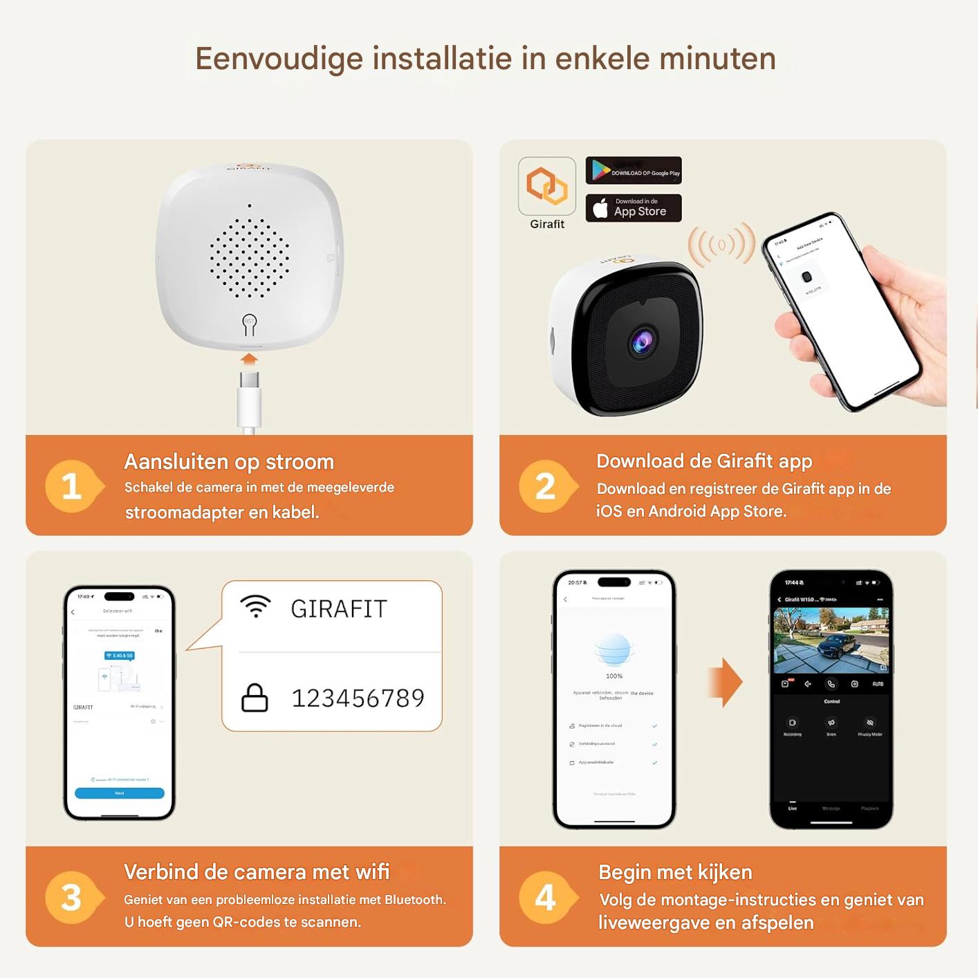 • App: Live meekijken en tot 4 camera’s tegelijk beheren