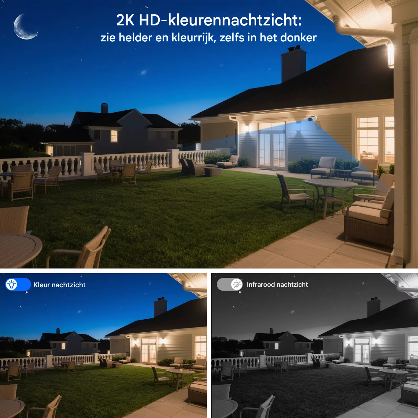 • Nachtzicht: kleur + infrarood, tot 15 meter