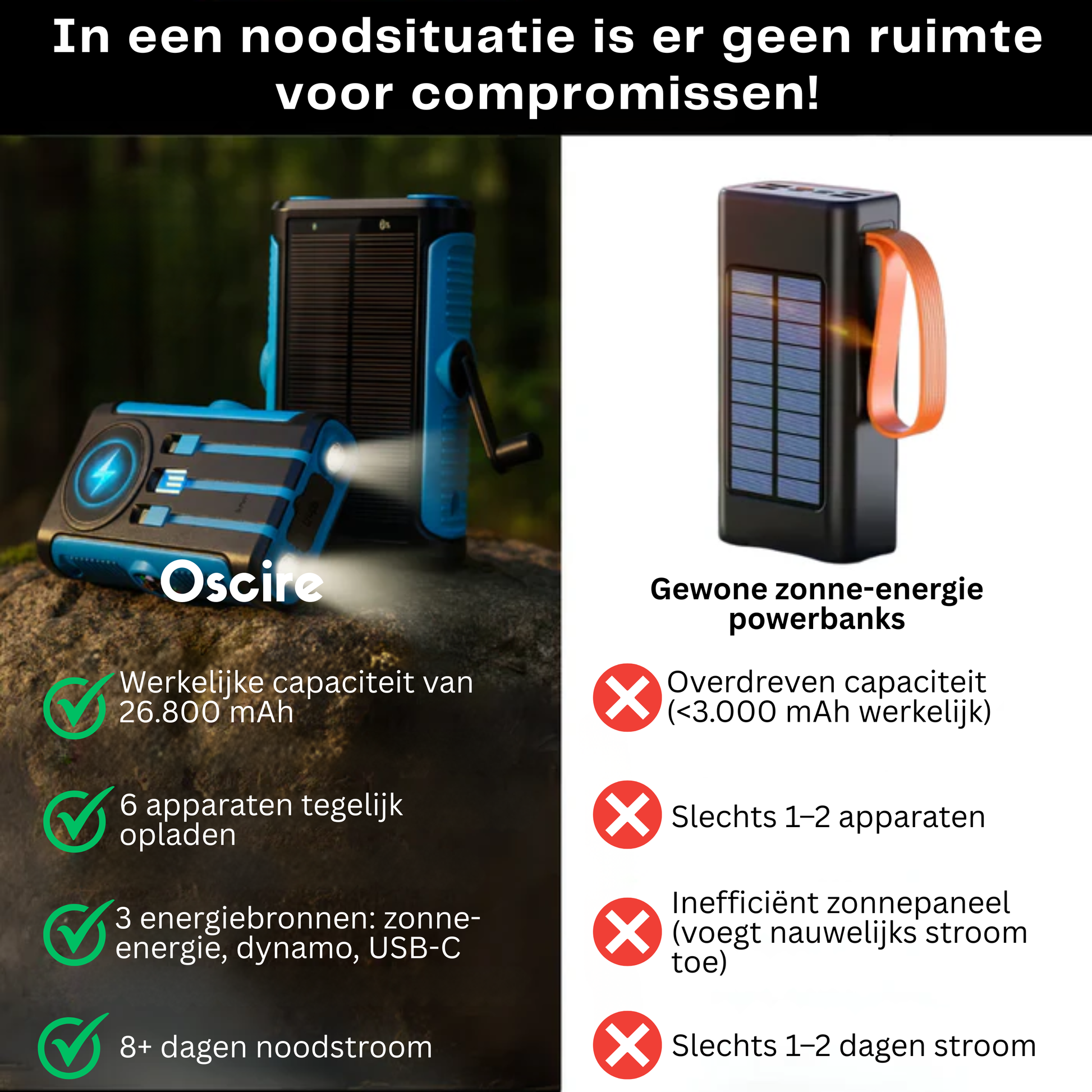 SolarPower™ is geen gadget, maar een essentiële energieoplossing voor dagelijks gebruik, reizen en noodgevallen. Eén powerbank die alles vervangt wat je nu gebruikt, en meer.